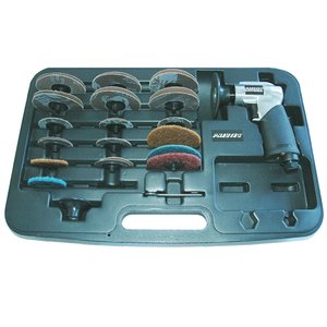 Set masina de slefuit unghiulara 75 mm, 3.200 rpm, cu set accesorii in geanta, PNEUTEC tip UT8763/1