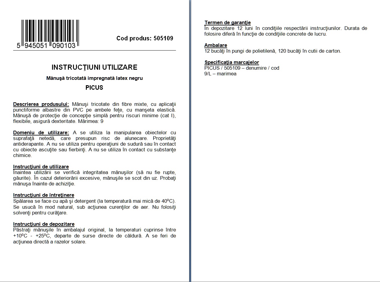 A se utiliza la manipularea obiectelor cu suprafata neteda, care presupun risc de alunecare. Proprietati antiderapante. A nu se utiliza pentru operatiuni de sudura sau in contact cu obiecte ascutite sau fierbinti. A nu se utiliza in contact cu substante chimice.