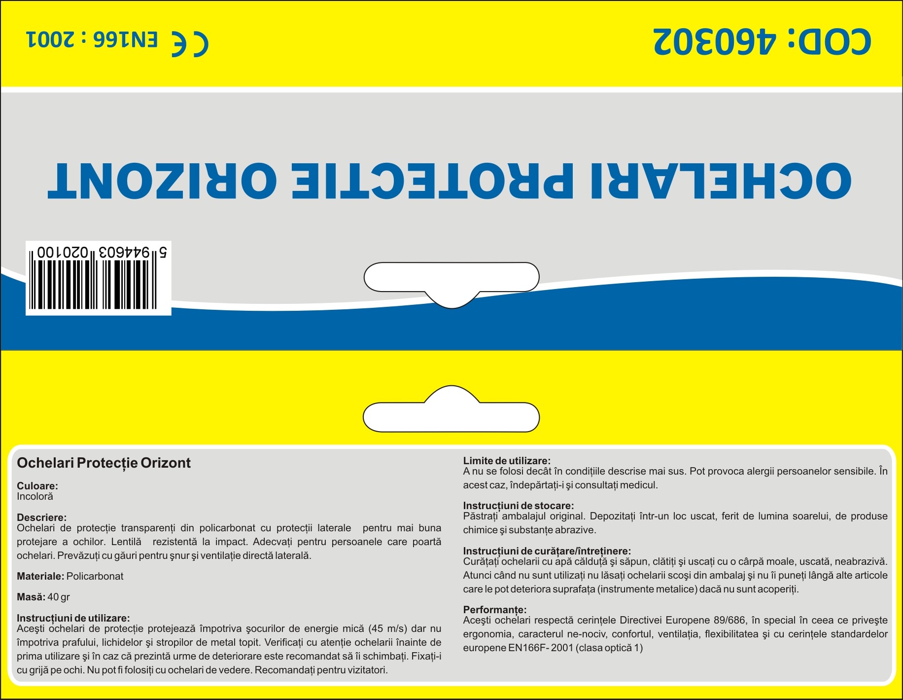 Conform: DE 89/686 si EN166F-2001 (Clasa optica 1)