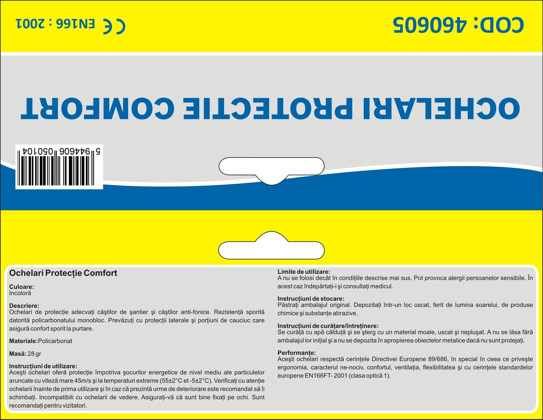 Conform: DE 89/686 si EN166F-2001 (Clasa optica 1)