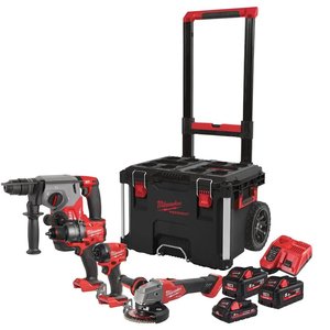 Set 4 scule 18V, M18 FPP4E-555T: M18 FHX-0, M18 FPD3-0X, M18 ONEFSAG125XB-0X, M18 FPD3-0X, 2 x M18HB5.5™ 5.5Ah, 1 x M18HB3 3Ah, incarcator M12-18FC in cutie HD