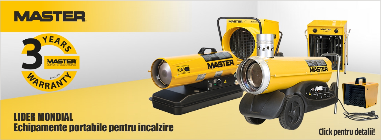 Produsele Master beneficiaza de o garantie extinsa limitata de 3 ani, acest lucru este marcat cu o eticheta pe ambalajul produselor eligibile. Master Climate Solutions (MCS) este liderul mondial in producerea echipamentelor portabile pentru incalzitoare, racitoare, uscatoare si ventilatoare.