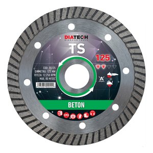 Disc diamantat continuu pentru beton, caramida, pavaj, TURBO, 125x22.2